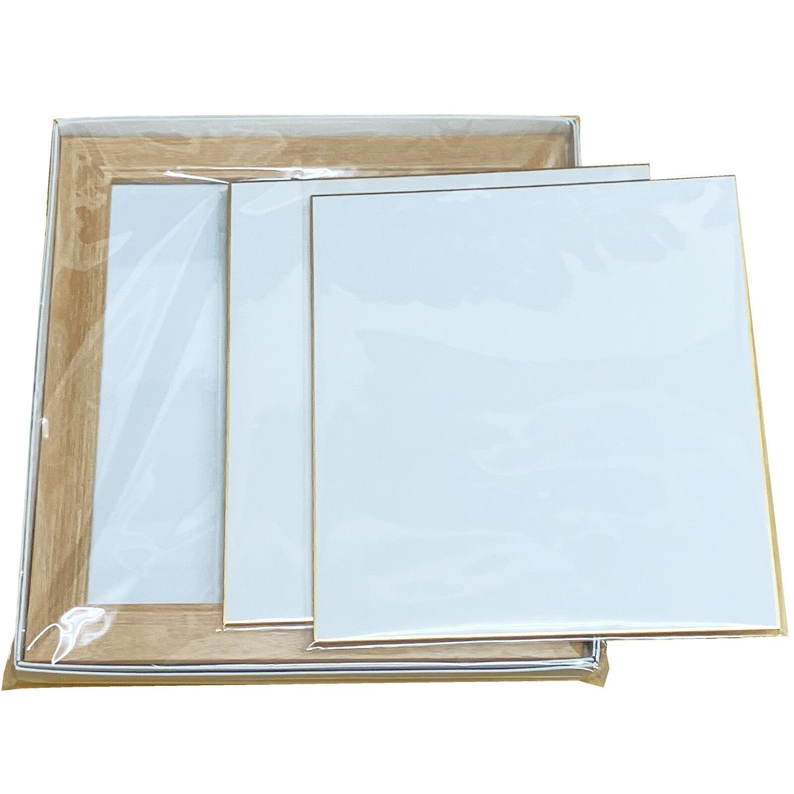 練習用・清書用の2枚の色紙に、しっかりした「ガラス板入り木製額縁」をセット