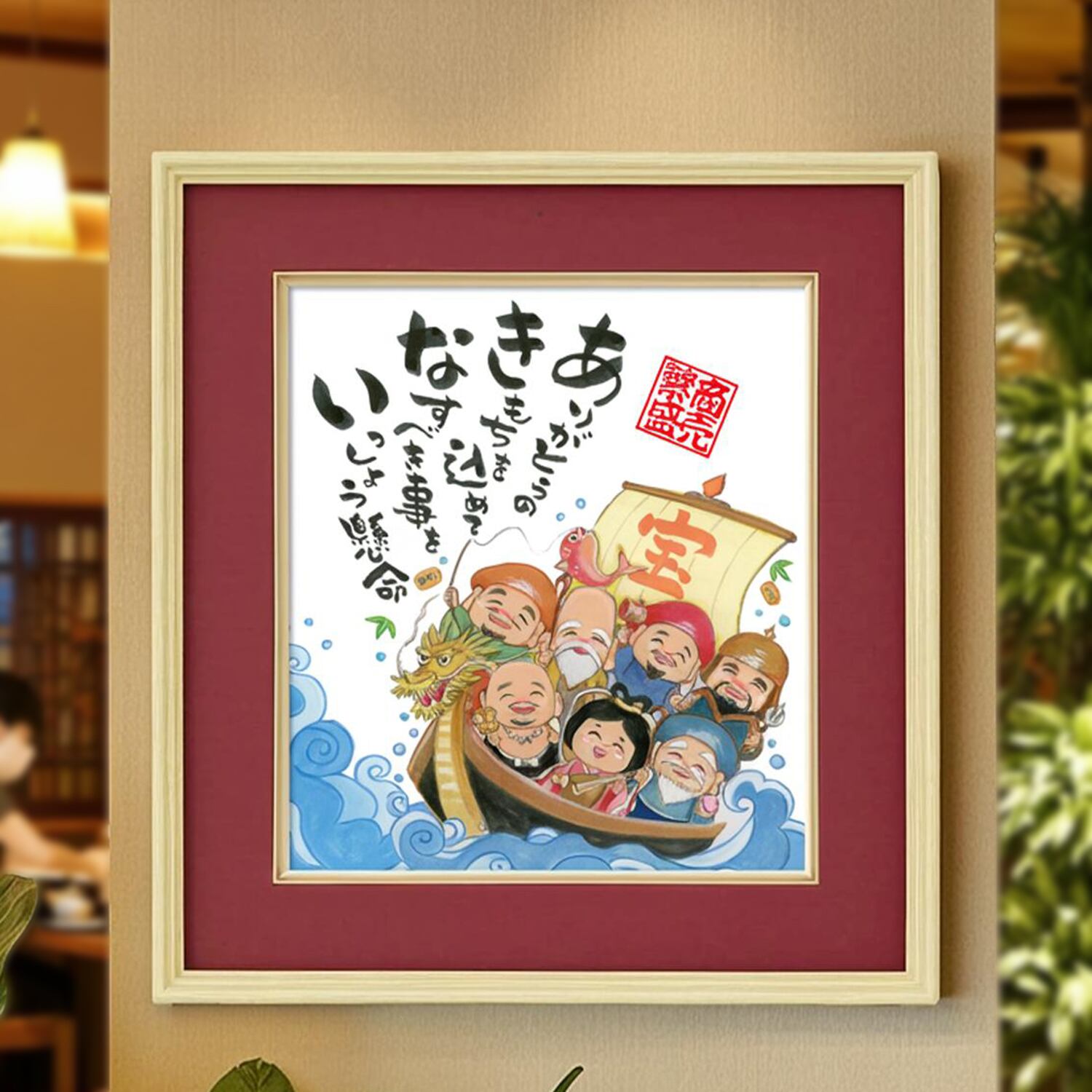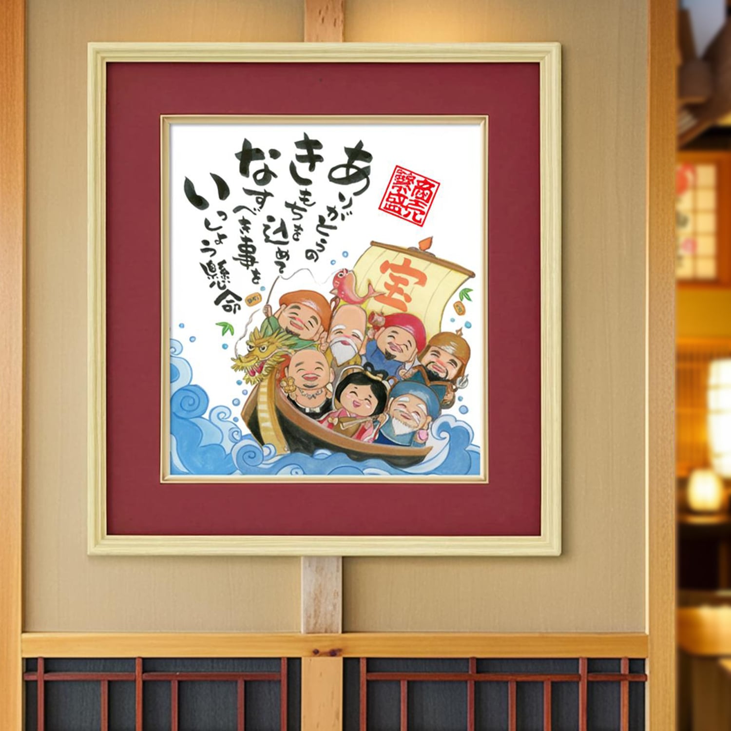 開店祝い プレゼント 商売繁盛 周年記念 ギフト 七福神 宝船 あきない 商いの詩 高級額入り イラスト ポエム 飲食 会社 お店 家族 上司 同僚 金運 祈願 開運 千客万来